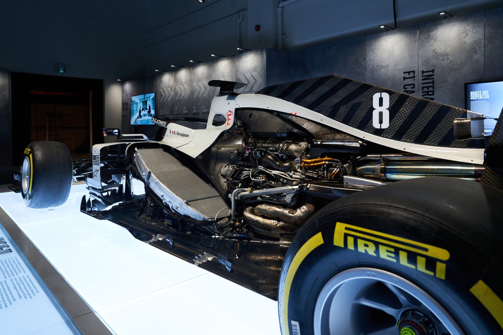 También estará presente el Haas VF-20 de 2020, pilotado por Kevin Magnussen y Romain Grosjean durante una temporada compleja para la Fórmula 1. El auto será exhibido sin la cubierta del motor, permitiendo observar su compleja ingeniería interna.